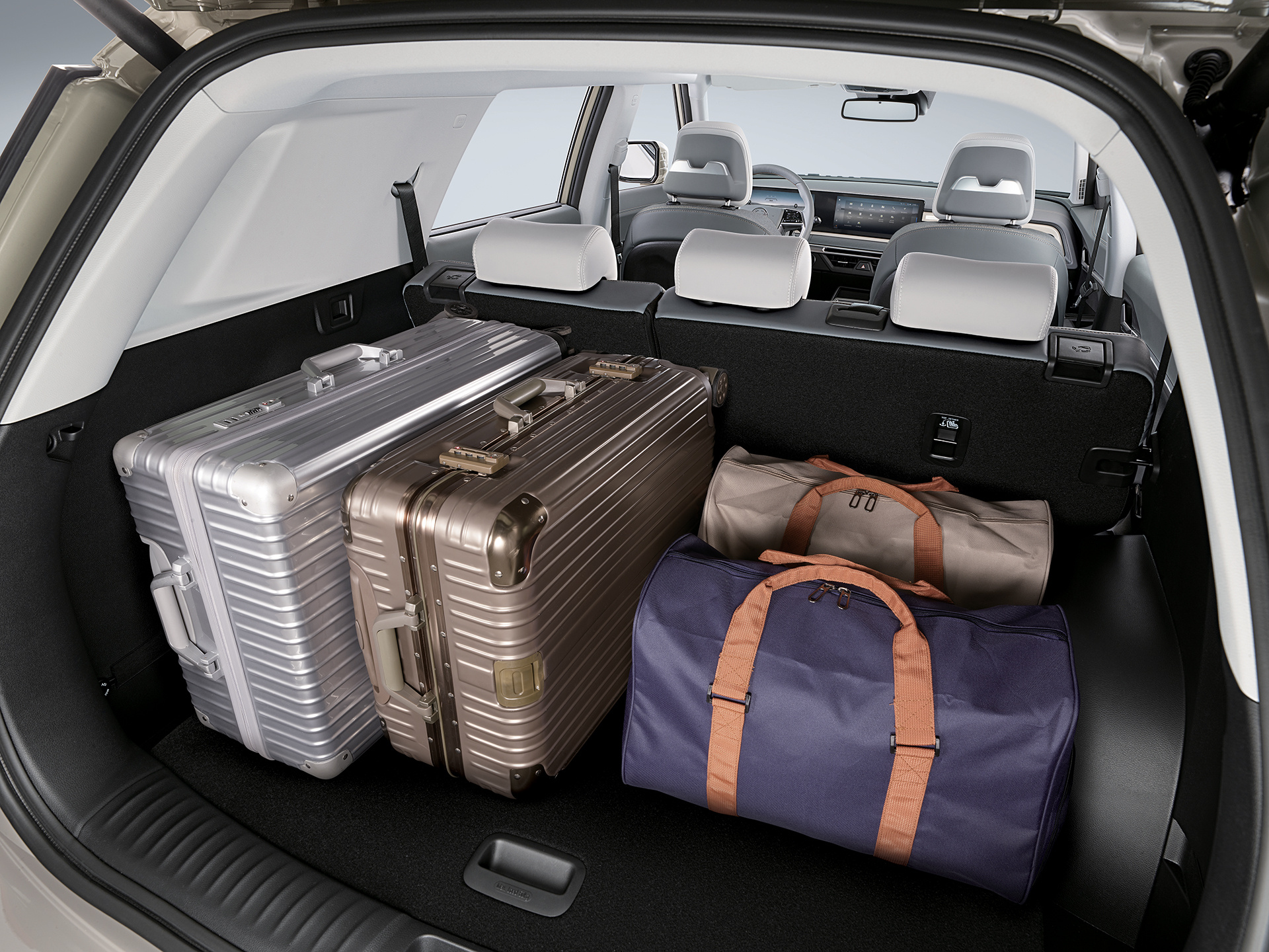 KGM Torres EVX je ideální volbou pro všechny rodiny. Díky prostornému interiéru a velikému zavazadlovému prostoru o objemu 839 litrů s sebou pohodlně vezmete vše, co potřebujete na výlety, nákupy, dovolenou i každodenní ježdění.